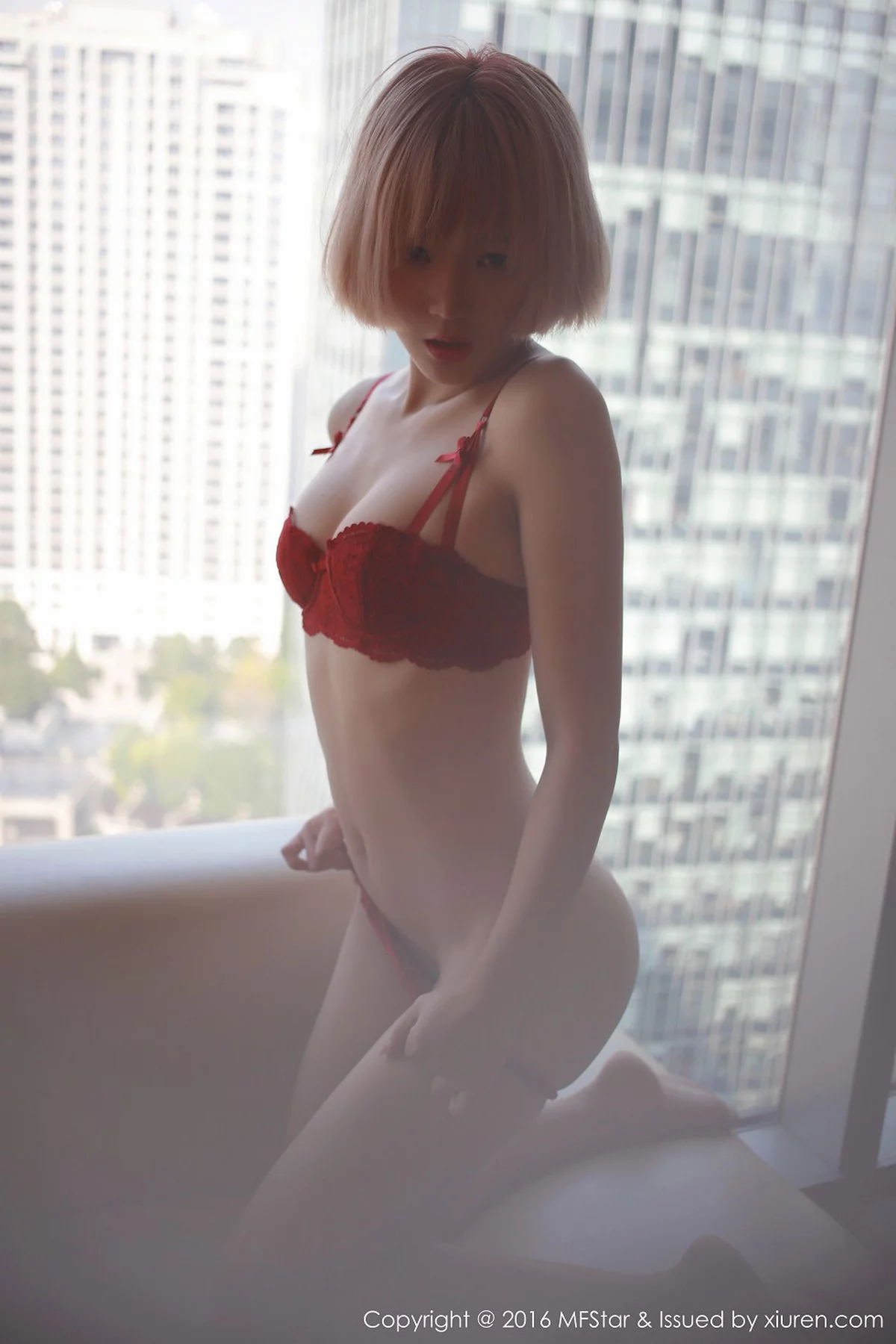 [MFStar模范学院]Vol.082_嫩模悦爷妖精居家红色内衣半脱内裤秀诱人翘臀写真51P
