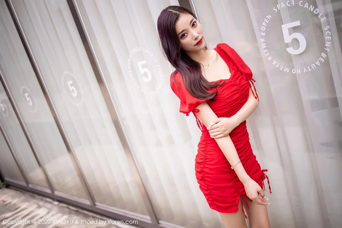 [XiaoYu画语界]Vol.326_女神杨晨晨sugar街拍主题鲜艳红裙秀完美身材动人写真73P